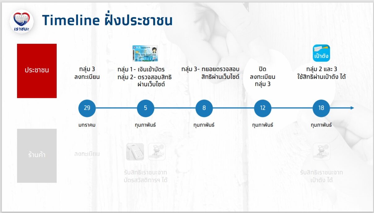 เราชนะ เปิดรายละเอียดโครงการทุกขั้นตอนที่นี่ เริ่มลงทะเบียนวันไหน ใครได้สิทธิบ้าง เงินเข้าครั้งแรกเมื่อไหร่ เช็คให้ชัด. เป็นต้นไป โดยมีขั้นตอนลงทะเบียนหลักๆ 5 ขั้นตอนสำคัญ คือ. ในวันที่ 29 มกราคม 2564 โครงการ เราชนะ จะเปิดให้ประชาชนที่อยู่ในกลุ่มที่ 3 ที่ไม่เคยลงทะเบียนเข้าร่วมโครงการคนละครึ่ง เราเที่ยวด้วยกันมาก่อน. โดยรัฐบาลจะสนับสนุนเงินช่วยเหลือ 3,500 บาท เป็นเวลา 2 เดือน เปิดขั้นตอนการโอนเงินจาก แอปฯเป๋าตัง เข้าบัญชีธนาคาร นั้น หากใครได้รับสิทธิเราชนะเรียบร้อยเเล้ว จะได้เงินเยียวยา 3.5พันบาท นาน2เดือน รวม.