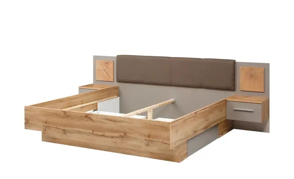 Breckle futonbett, mit verstellbaren kopfstützen und ausziehschubkästen am kopfteil.