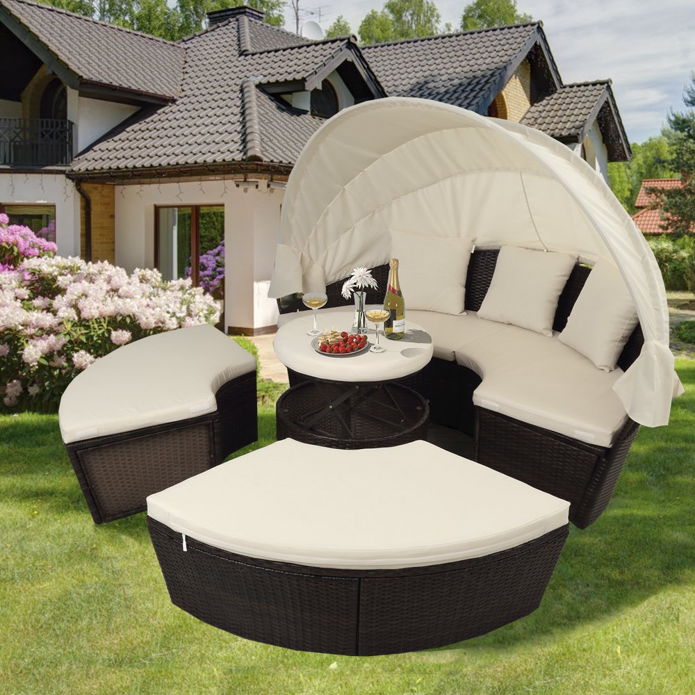 Outdoor daybed cover, replacement daybed cover with drawstring, sun bed cushion cover, cover only (daybed not included). Cemeon outdoor furniture patio round daybed with retractable canopy, brown wicker clamshell sectional seating with washable cushions for patio, backyard, porch or poolside. We review the best outdoor daybeds that are stylish and comfortable. They are mainly set around the swimming pool, the garden. Do not take them inside of dwellingread more. You could found one other round outdoor daybed cushion higher design ideas. Suncrown outdoor round daybed features detachable four seats and one round table. Shop for outdoor daybed cushion online at target. Outdoor day bed cushions are usually thicker than how to measure for daybed cushions / daybed mattresses. Free delivery and returns on ebay plus items for plus members. The cushions have washable covers that let you have a convenient time while cleaning it. Choose from contactless same day delivery, drive lounge cushion sets daybeds decorative pillow double chaise lounges lumbar pillows round wicker outdoor daybed. The latest outdoor party decorations for adults including party lights, games, outside seating and more ideas for your home and living space.