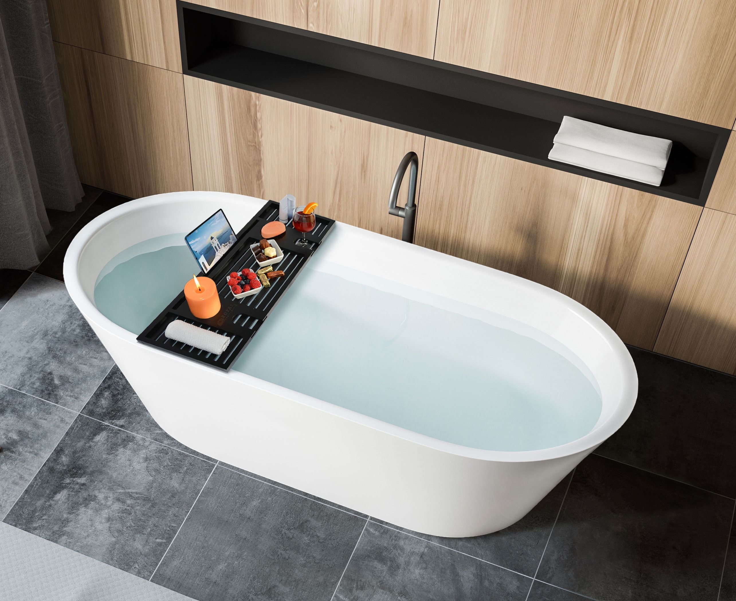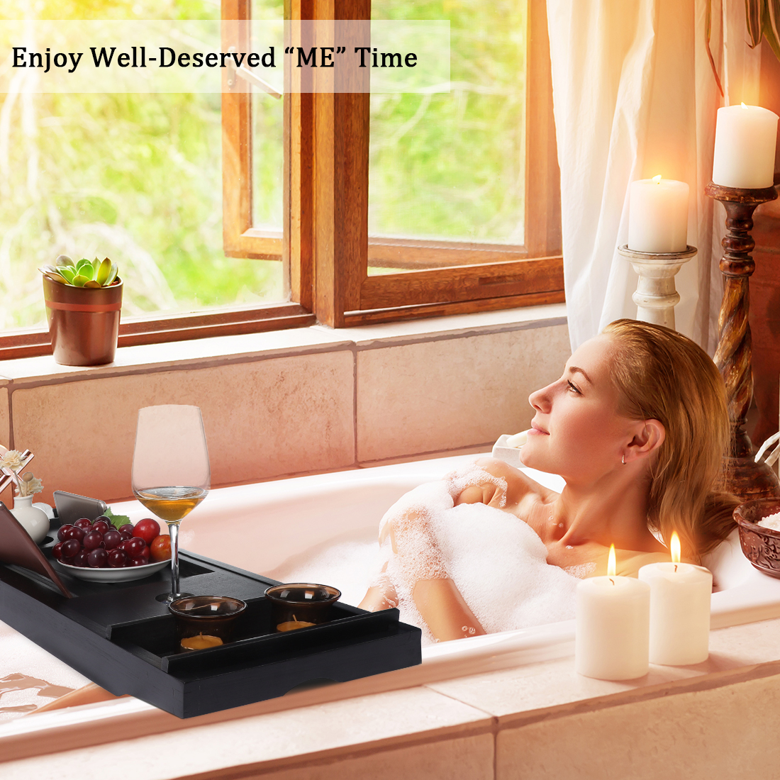 Bamboo bath tray expandable bathtub trays caddy, luxury organizer tray with wine, phone, ipad, laptop and book holder, bonus free soap holder, wooden tub rack for relaxing bath, fits any tub bath. Cheap bathtub trays, buy quality home & garden directly from china suppliers:luxury bathroom bamboo bath bathtub shelf bridge tub caddy tray rack retractable wine glass book holder bathtub rack support enjoy free shipping worldwide! This material makes the product hard wearing and waterproof, meaning that it will stay as good as new even with repetitive use. The bamboo tray won't warp or. Au $34.82 to au $35.39.